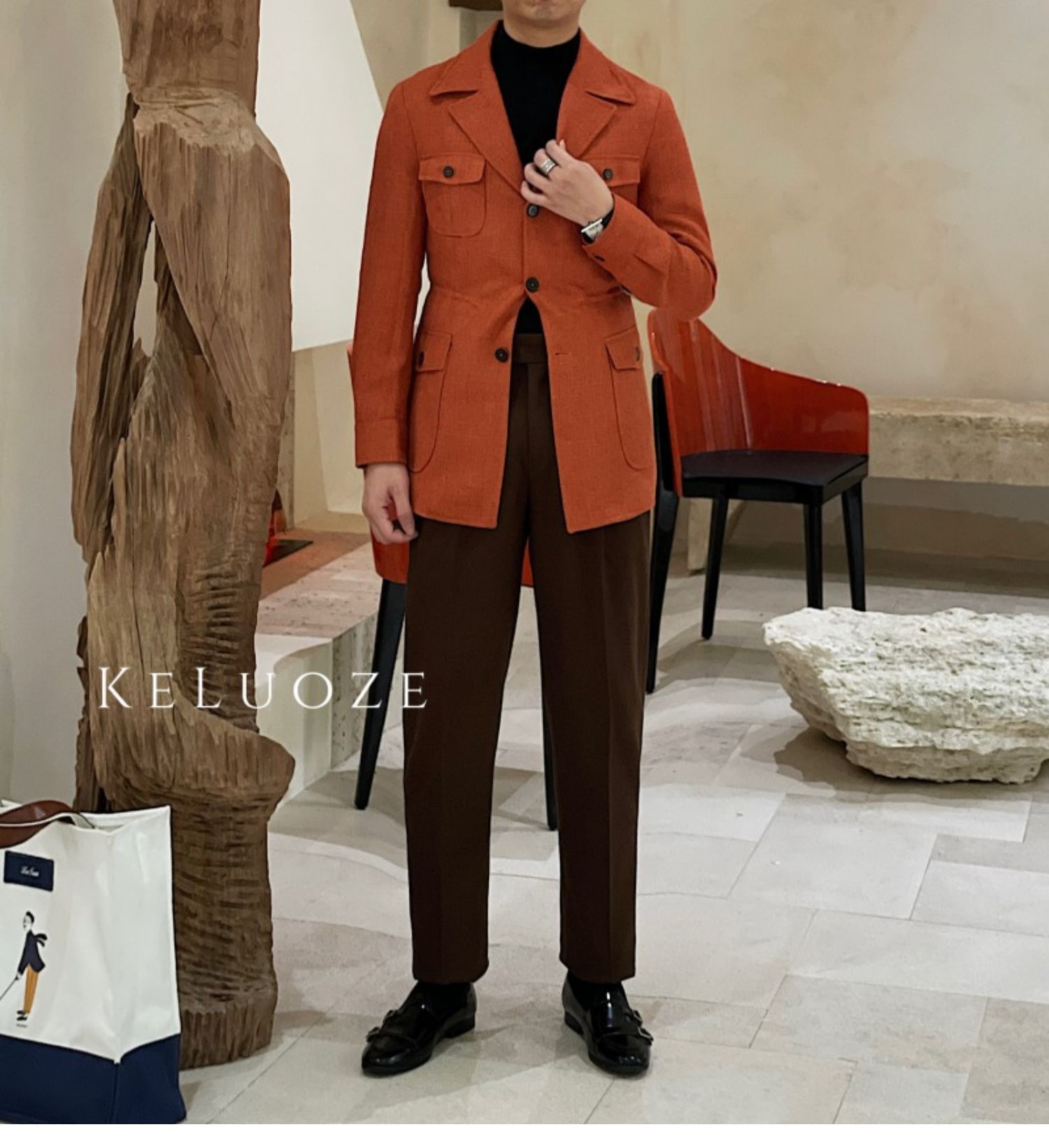 Retro Waist Cinching Casual Slim Fit Jacket, Suit Jacket For Men